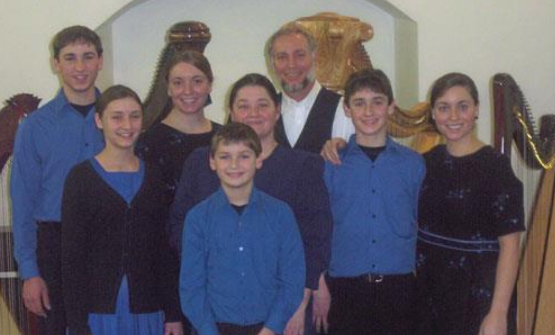 It has been four years since the article from the newspaper was printed and we have kept busy since then with many harp programs and producing more harp recordings. Alex still teaches school part time and builds harps the rest of the time going full time during the summer months. Since the time of this article, Alex has developed his own line of Italian harps, and a new line of more affordable harps. A ten-string Davidic harp was also added to the variety of harps that are now available. A new book was just released this fall by Alex titled: “Morning Meditations” and is a real inspiration to Christian musicians. Dena & Joanna are still at home busy teaching private music lessons and have enjoyed taking their harps on mission trips in the last few years (Belize, Grenada, & Haiti). They just completed their eighth recording this fall titled “This is the Day” and have lots more plans in mind for future CD’s. Joanna’s tendonitis in both hands (which started at the end of 2005), together with a house fire in February 2006 (which forced us to move out of our house for six months), slowed us down for most of 2006. Joanna’s condition improved, so we started our family harp programs again in December 2006. The other children have grown in their music skills, and enjoy participating in family programs. We have combined a number of instruments with the harps to make for an enjoyable program. Sue continues to home school the four youngest children and enjoys being secretary for the harp business and program manager for the family.