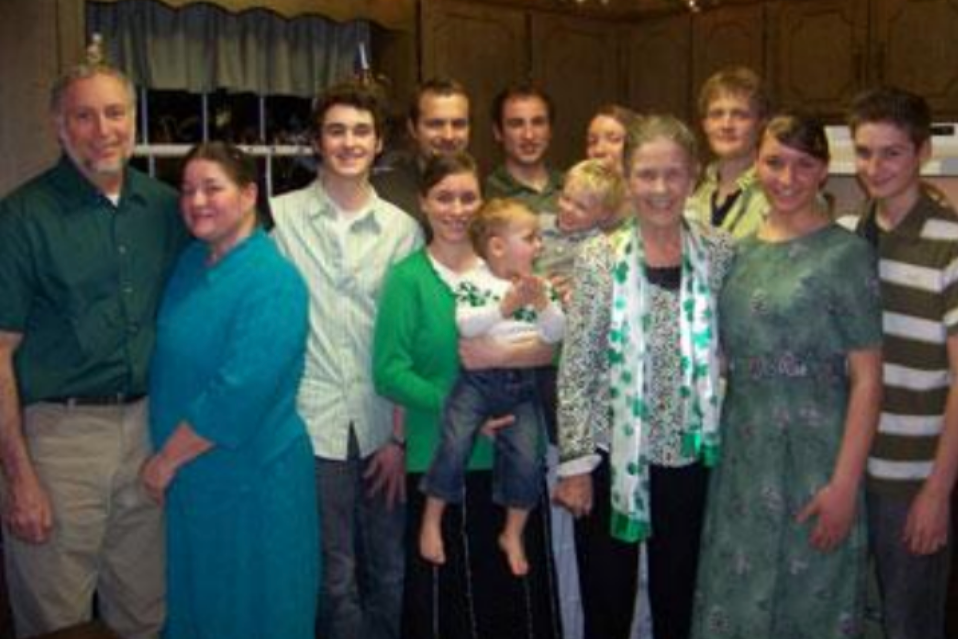 Left: Alex, Sue, Paul, Nate & Dena with Craig, Anthony, Joanna & Stephen with Nicolas. In front... “GG” (Sue’s mother), Emily and Mark